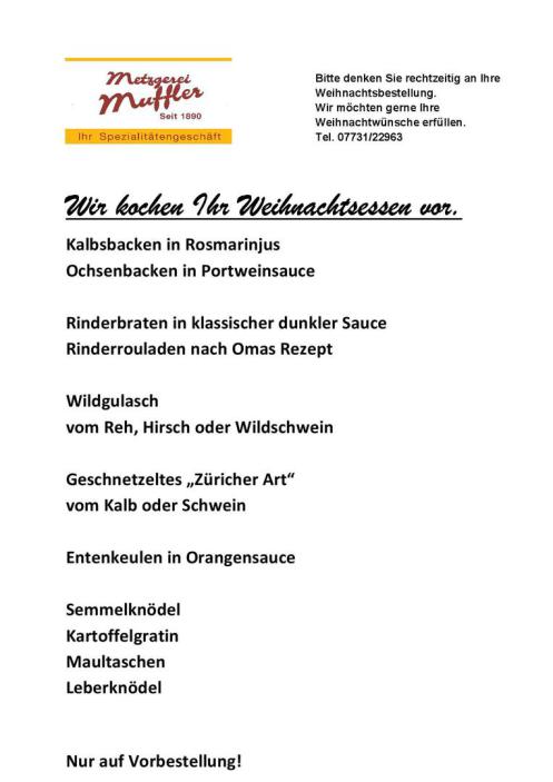 Wir kochen aber Ihr Weihnachtessen gerne vor.